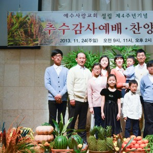 주님의 축복속에서 새성전에 입당하여 교회설립 4주년기념과 " 2013년 추수감사절" 예배를 드렸습니다. 모든 교인이 서로 축복하고 축복 받으며, …